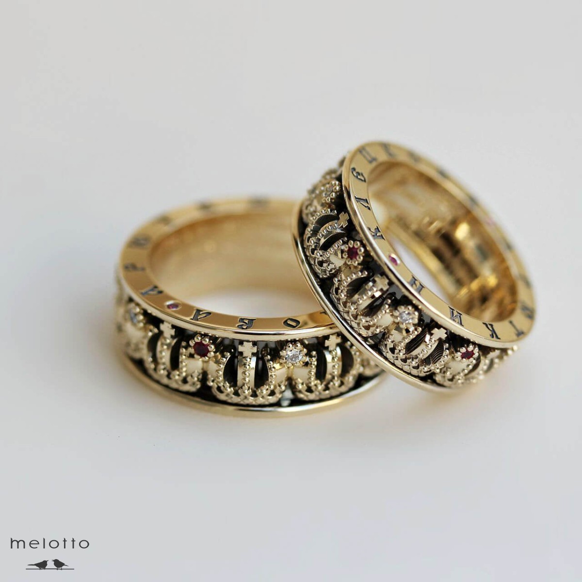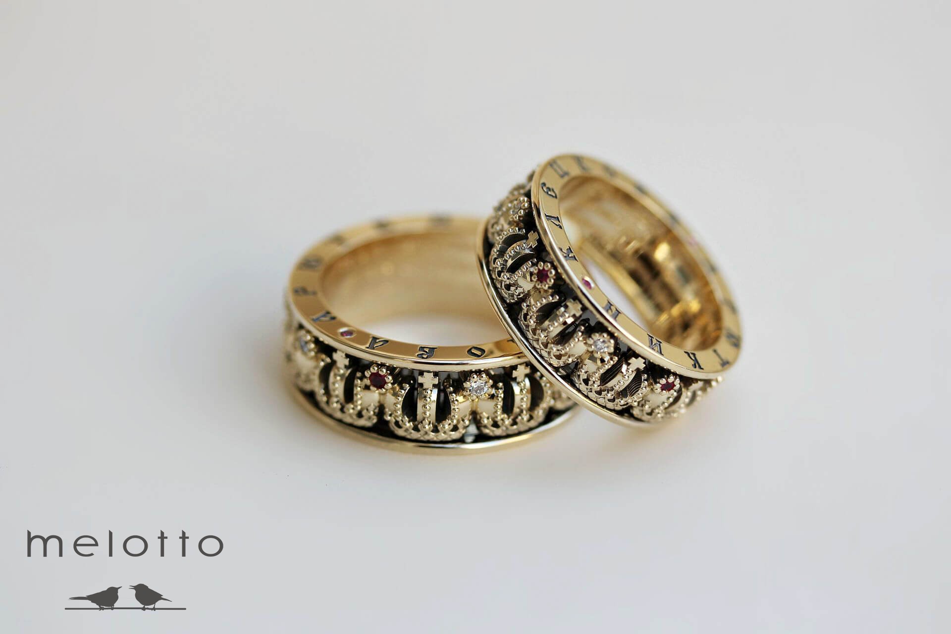 Для расчета стоимости колец в ваших размерах, просим обратиться к менеджерам Дома Melotto. При изменении параметров и размеров изделия возможно увеличение веса и количество камней. При этом кольца изготавливаются либо с бриллиантами, либо с рубинами.